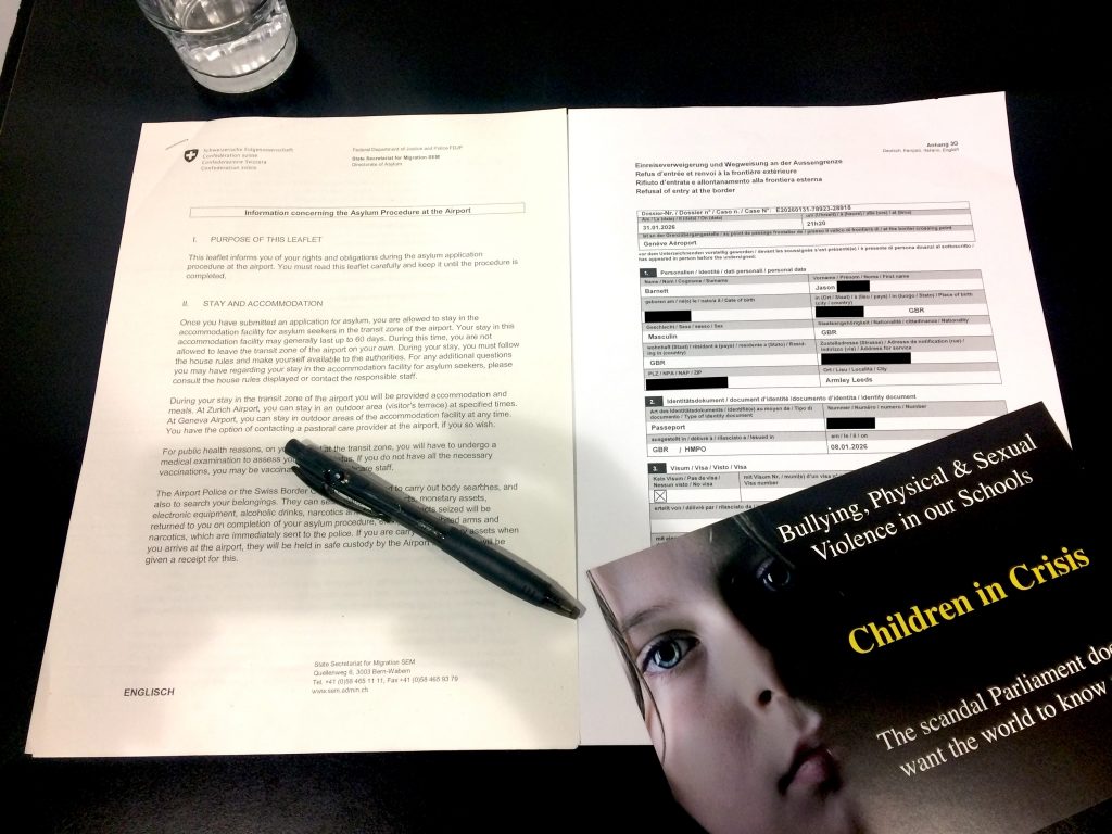 As a consequence of evidence recently presented to the Police, to demonstrate the involvement of numerous individuals including Prime Ministers, ministers and MPs in the alleged cover up and also as a result of subsequent events, I have been forced to take emergency steps. As a consequence, in January 2026, I left the UK and flew to Geneva Switzerland, where I applied for Asylum and Refugee Status and protection from the British State.